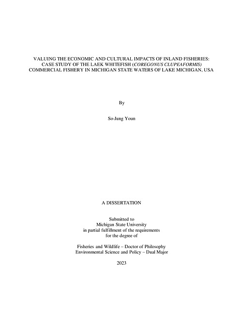 Valuing the Economic and Cultural Impacts of Inland Fisheries : Case Study of the Lake Whitefish (Coregonus clupeaformis) Commercial Fishery in Michigan State Waters of Lake Michigan, USA