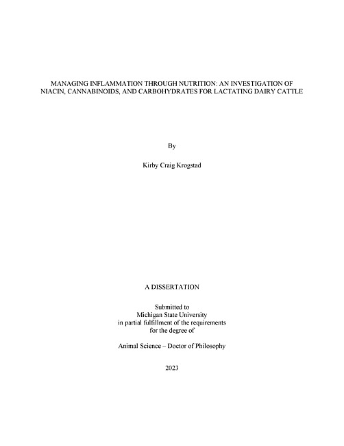MANAGING INFLAMMATION THROUGH NUTRITION : AN INVESTIGATION OF NIACIN, CANNABINOIDS, AND CARBOHYDRATES FOR LACTATING DAIRY CATTLE
