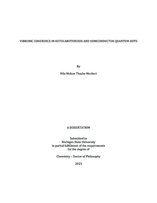 VIBRONIC COHERENCE IN KETOCAROTENOIDS AND SEMICONDUCTOR QUANTUM DOTS
