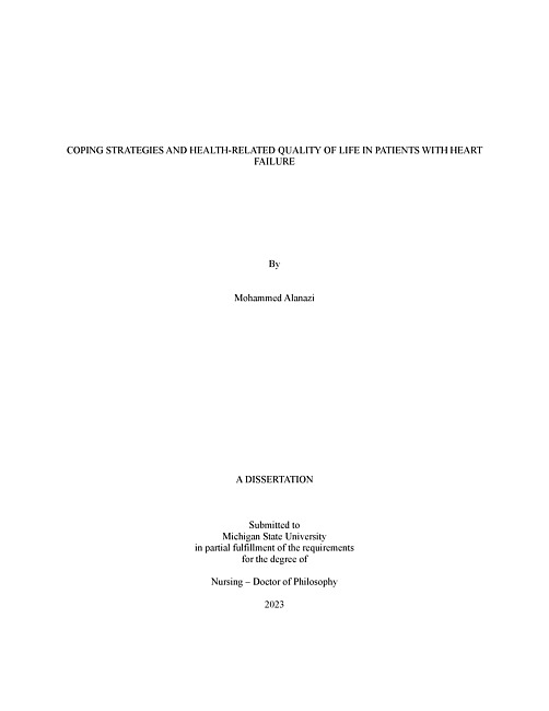 Heart failure (HF) contributes to poor physical and emotional health-related Quality of Life (HRQoL) and poor health outcomes. Coping strategies have been identified as essential in enhancing HRQoL. This 3-manuscript dissertation focuses on the stressor of heart failure (HF) associated severity and its relationship with coping and health-related quality of life (HRQoL). This dissertation is comprised of 3 manuscripts (a) a scoping review of literature on coping strategies and HRQoL; (b) a quantitative study of the associations between the stressor (HF severity), influencing factors (demographics [age, sex, education, and income] and HF duration), coping strategies (problem-focused, active emotion-focused, and avoidant emotion-focused), and physical and emotional HRQoL outcomes; and (c) a multiple mediation study that examines the mediating role of coping strategies between the stressor of HF severity and physical and emotional HRQoL.In chapter 2, a literature review was conducted following the Arksey and O’Malley template. This scoping review was guided by the TSCM. Eligibility criteria involved patients with HF, reported on coping strategies and HRQoL, and published in English. In chapters 3 and 4, a cross-sectional survey design was used. A convenience sample of individuals with HF were recruited online using Researchmatch.org. Using PROCESS macro for SPSS, a multiple mediation model was applied to evaluate if one or more coping strategy types served as a mediator between HF severity and emotional and/or physical HRQoL. In chapter 2, thirty-five studies were included (4 RCTs, 27 cross-sectional, and 4 qualitative/mixed methods). Active emotional coping (e.g., acceptance) and problem-focused (e.g., seeking social support) coping strategies were linked with better HRQoL, while avoidant emotional coping (e.g., denial) was linked to worse HRQoL. In the presence of the stressor of HF severity, key factors that influenced the types of coping strategy included sex, age, social support, income, education, spiritual beliefs, and illness duration. However, the evidence on the effectiveness of the type of coping on HRQoL remains inadequate due to the majority of studies being cross-sectional. The results of chapter 3 showed that 108 participants completed the study with an age range of 20-81 years (37.03±11.77 years). Most participants were male (57.4%, n=62) and self-identified as Black or African American (60.2%, n=65). The mediation analysis results showed that active emotion-focused coping mediated the relationship between all three NYHA classifications (II, III, and IV) and emotional, but not physical HRQoL. Finally, chapter 4 showed a statistically significant indirect effect on the emotional HRQoL through only active emotion-focused coping (X1=0.74 [95% CI: 0.01 to 1.97]; X2=0.73 [95% CI: 0.01 to 1.91]), which suggests that active emotion-focused coping served as a mediator between HF severity (all three NYHA classifications) and emotional HRQoL. This dissertation contributes to the science by recommending a consistent definition of the three types of coping and a better understanding of the influence of age, sex, education, income, and HF duration on coping strategies. This dissertation found that problem-focused and active emotion-focused coping were linked with improved physical and emotional HRQoL. Factors such as older age, male, and having a low level of education and lower level of income were showed as significantly associated with using more avoidant emotion-focused coping strategies, which can direct interventional work. Finally, this dissertation advances science by demonstrating that active emotion-focused coping serves as a mediator, playing an important role in mediating the effects between HF severity and emotional HRQoL. This will help initiating new intervention directions for nursing research, broadening the scope of education to enhance symptom management and QoL through nursing programs, and providing empirical evidence for clinicians to smoothly integrate into their practice. These contributions are expected to advance the field of HF science and care.