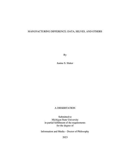 The following work presents an ethnography of this idea – that data, particularly digital data, makes a difference. The approach was in Science and Technology Studies and theories of difference to examine dominant imaginaries of digital data and its contradictory impacts on groups of different social categorizations. To guide my activities, the inquiry is centered upon a question of difference, namely, through interactions with makers, practitioners, and users of self-tracking devices, I sought to identify how social differences were encountered, made sense of, and produced through digital tools. I interacted with self-tracking practices across three levels that captured institutional, community, and individual practices to engage with this question. The findings from this work speak to three processes in which self-tracking tools made a difference, specifically racial differences, productive enabling both the reproduction of normative whiteness and the decentering of it. This work seeks to contribute to eliciting the values and biases of digital practices that can have stratifying social impacts.