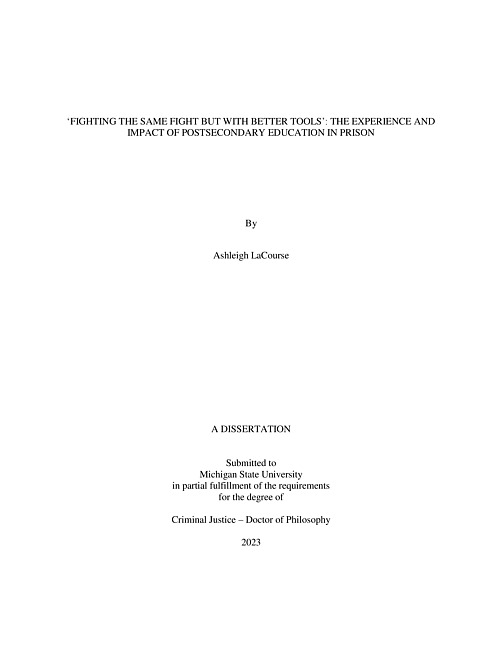 ‘FIGHTING THE SAME FIGHT BUT WITH BETTER TOOLS’ : THE EXPERIENCE AND IMPACT OF POSTSECONDARY EDUCATION IN PRISON