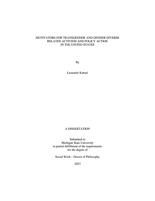 MOTIVATORS FOR TRANSGENDER AND GENDER DIVERSE RELATED ACTIVISM AND POLICY ACTION IN THE UNITED STATES