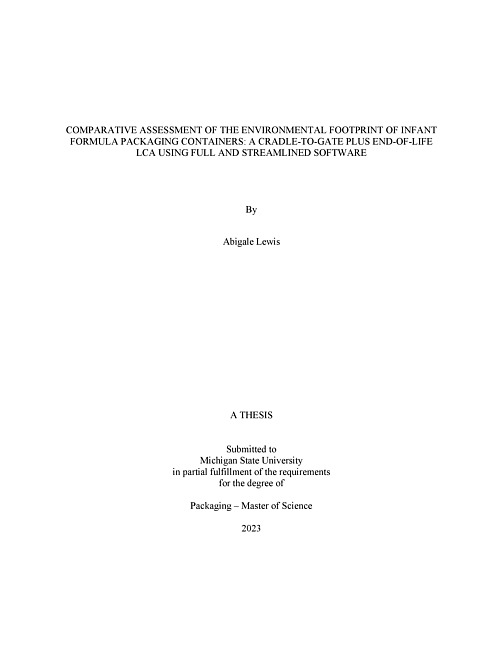 COMPARATIVE ASSESSMENT OF THE ENVIRONMENTAL FOOTPRINT OF INFANT FORMULA PACKAGING CONTAINERS : A CRADLE-TO-GATE PLUS END-OF-LIFE LCA USING FULL AND STREAMLINED SOFTWARE