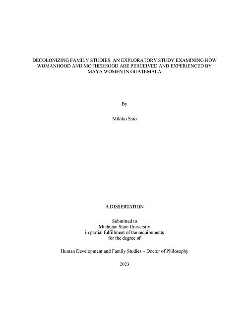 Decolonizing Family Studies : An exploratory study examining how womanhood and motherhood are perceived and experienced by Maya women in Guatemala