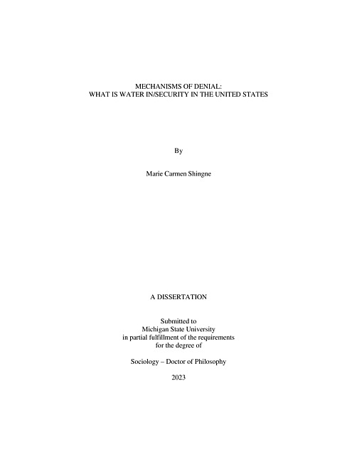 Access to adequate and safe drinking water and sanitation services is imperative to human development, health, and well-being. The belief that water and sanitation insecurity is a problem of lower-income countries is seemingly supported by international and national statistics framing access to adequate and safe drinking water and sanitation services as universal in high-income countries including the United States. Yet, a growing body of literature is challenging these statistics with in-depth case studies outlining populations across the United States facing water and sanitation insecurity. In my dissertation, I use a political ecology framework and feminist epistemology to analyze both the mechanisms of denial that create water and sanitation insecurity in the United States and what makes the resulting insecurity invisible in national and international statistics. For each research question I conducted in-depth, qualitative analysis of secondary interview data with policy and water sector representatives, local nonprofit organization staff, and residents lacking access to water and/or sanitation services across five regions. I analyzed how respondents across groups and regions defined their relationships with water, how infrastructure was used to connect and disconnect residents from access, and how the framing of problems and solutions related to water insecurity compared across groups and how this contributed to the maintenance or mitigation of water insecurity. My analysis revealed how historical marginalization has led to modern exclusion through layered costs of access and municipal underbounding. I make the case for community-based approaches to solving water and sanitation insecurity in the United States that can account for the intertwined nature of positionality and power in determining how knowledge is constructed, how problems are framed, and what solutions are recommended.