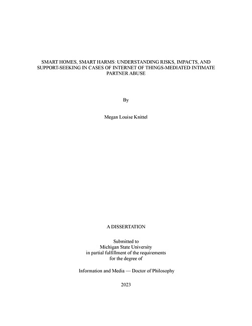 SMART HOMES, SMART HARMS : UNDERSTANDING RISKS, IMPACTS, AND SUPPORT-SEEKING IN CASES OF INTERNET OF THINGS-MEDIATED INTIMATE PARTNER ABUSE
