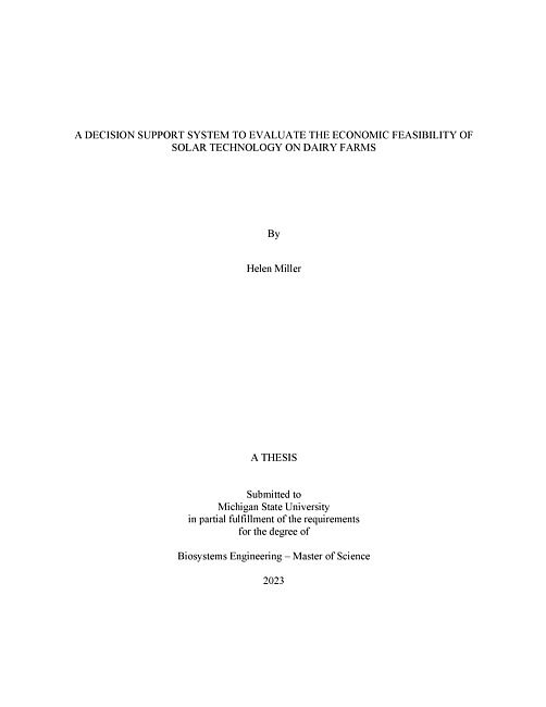 A Decision Support System to Evaluate the Economic Feasibility of Solar Technology on Dairy Farms