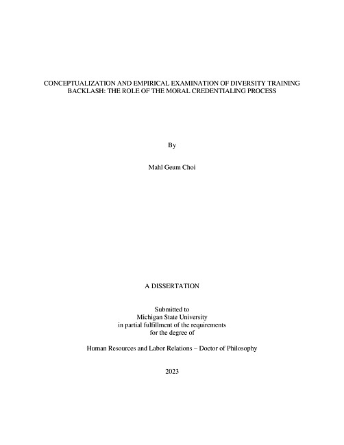 CONCEPTUALIZATION AND EMPIRICAL EXAMINATION OF DIVERSITY TRAINING BACKLASH : THE ROLE OF THE MORAL CREDENTIALING PROCESS