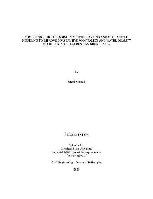 COMBINING REMOTE SENSING, MACHINE-LEARNING AND MECHANISTIC MODELING TO IMPROVE COASTAL HYDRODYNAMICS AND WATER QUALITY MODELING IN THE LAURENTIAN GREAT LAKES
