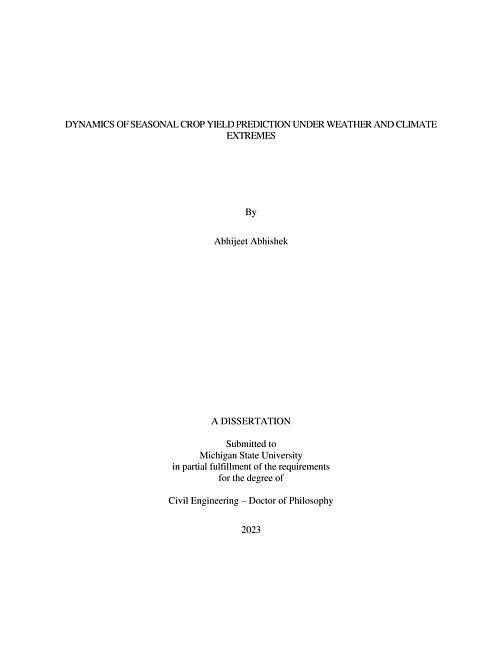 DYNAMICS OF SEASONAL CROP YIELD PREDICTION UNDER WEATHER AND CLIMATE EXTREMES