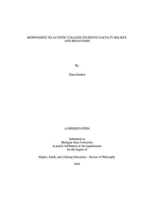 Responding to Autistic College Students : Faculty Beliefs and Behaviors