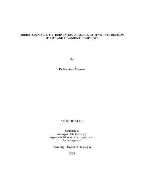 IRIDIUM CATALYZED C–H BORYLATION OF ARENES WITH N,B-TYPE DIBORON SPECIES AND Ir(I) ANIONIC COMPLEXES