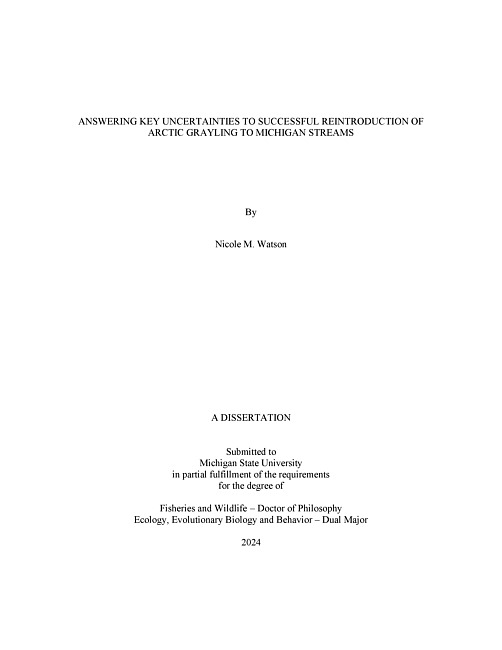 ANSWERING KEY UNCERTAINTIES TO SUCCESSFUL REINTRODUCTION OF ARCTIC GRAYLING TO MICHIGAN STREAMS