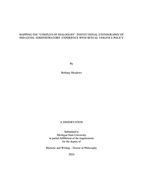 Mapping the "Complex of Dialogues" : Institutional Ethnography of Mid-Level Administrators' Experience with Sexual Violence Policy