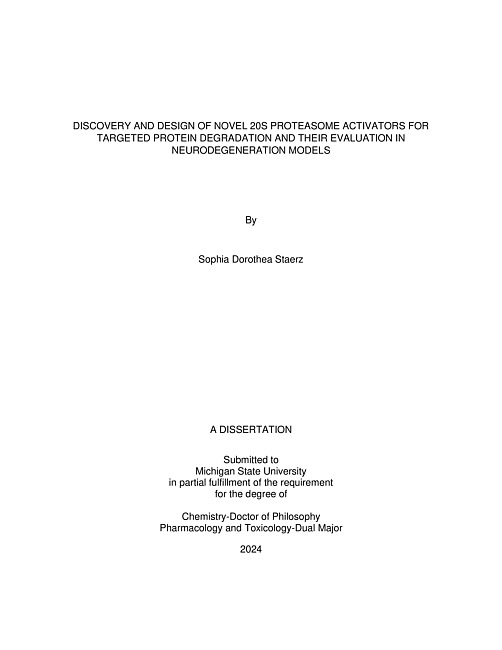 DISCOVERY AND DESIGN OF NOVEL 20S PROTEASOME ACTIVATORS FOR TARGETED PROTEIN DEGRADATION AND THEIR EVALUATION IN NEURODEGENERATION MODELS