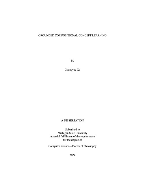 Humans learn concepts in a grounded and compositional manner. Such compositional and grounding abilities enable humans to understand an endless variety of scenarios and expressions. Although deep learning models have pushed performance to newlimits on manyNatural Language Processing and Computer Vision tasks, we still have a lack of knowledge about how these models process compositional structures and their potential to accomplish human-like meaning composition. The goal of this thesis is to advance the current compositional generalization research on both the evaluation and design of the learning models. In this direction, we make the following contributions.Firstly, we introduce a transductive learning method to utilize the unlabeled data for learning the distribution of both seen and novel compositions. Moreover, we utilize the cross-attention mechanism to align and ground the linguistic concepts into specific regions of the image to tackle the grounding challenge. Unlike traditional learning, we use episodic training where each training item consists of one image and the sampled positive and negative compositional labels. We select the image’s compositional label by computing their matching scores Our empirical results show that combining episodic training and transductive learning does help compositional learning.Secondly, we develop a new prompting technique for compositional learning by considering the interaction between element concepts. In our proposed technique called GIPCOL, we construct a textual input that contains rich compositional information when prompting the foundation visionlanguage model. We use the CLIP model as the pre-trained backbone vision-language model and improve its compositional zero-shot learning ability with our novel soft-prompting approach. GIPCOL freezes the majority of CLIP’s parameters and only learns CLIP’s word embedding layer through a graph neural network. By concatenating the learnable soft prompt and the updated word embeddings, GIPCOL achieves better results compared with other prompting-based methods.Thirdly, since retrieval plays a critical role in human learning, our work studies how retrieval can help compositional learning. We propose MetaReVision which is a new retrieval-enhanced meta-learning model to address the visually grounded compositional concept learning problem. Given an image with a novel compositional concept, MetaReVision first uses a retrieval module to find relevant items from the training set. Then it constructs an episode for which the retrieved items form the support set and the test item forms the query set. The retrieved support set mimics the primitive concept learning scenario, while the query set encourages the compositional strategy learning by meta-learning’s bi-level optimization objective. The experimental results show that such retrieval-enhanced meta-learning framework helps the vision-language model’s compositional learning. Moreover, we create two new benchmarks called CompCOCO and CompFlickr for the evaluation of grounded compositional concept learning.Finally, we evaluate the large generative vision and language models in solving compositional zero-shot learning within the in-context learning framework. We highlight their shortcomings and propose retriever and ranker modules to improve their performance in addressing this challenging problem. These two modules select the most informative in-context examples in their most effective order to guide the backbone generative model. Our approach is novel in the context of grounded compositional learning and our experimental results show improved performance compared to basic in-context learning.