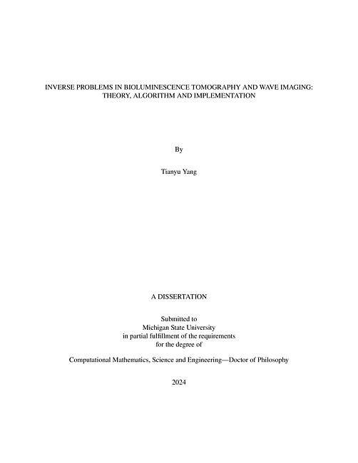 INVERSE PROBLEMS IN BIOLUMINESCENCE TOMOGRAPHY AND WAVE IMAGING : THEORY, ALGORITHM AND IMPLEMENTATION