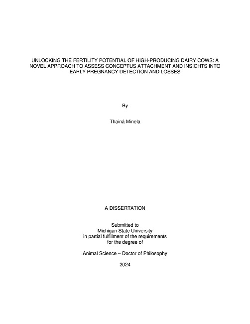 UNLOCKING THE FERTILITY POTENTIAL OF HIGH-PRODUCING DAIRY COWS : A NOVEL APPROACH TO ASSESS CONCEPTUS ATTACHMENT AND INSIGHTS INTO EARLY PREGNANCY DETECTION AND LOSSES
