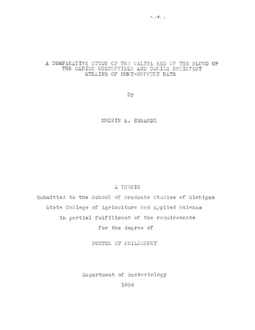 A comparative study of the saliva and of the blood of the caries susceptible and caries resistant strains of Hunt-Hoppert rats
