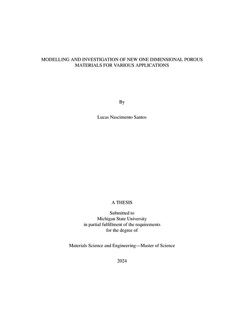 Modelling and investigation of new one dimensional porous materials for various applications