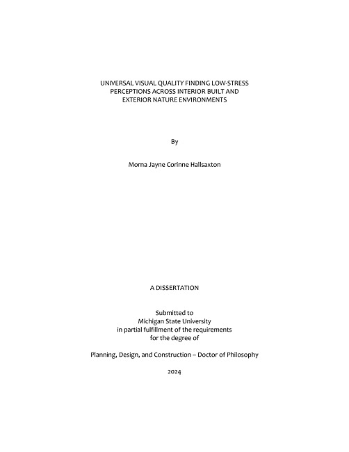 UNIVERSAL VISUAL QUALITY FINDING LOW-STRESS PERCEPTIONS ACROSS INTERIOR BUILT AND EXTERIOR NATURE ENVIRONMENTS