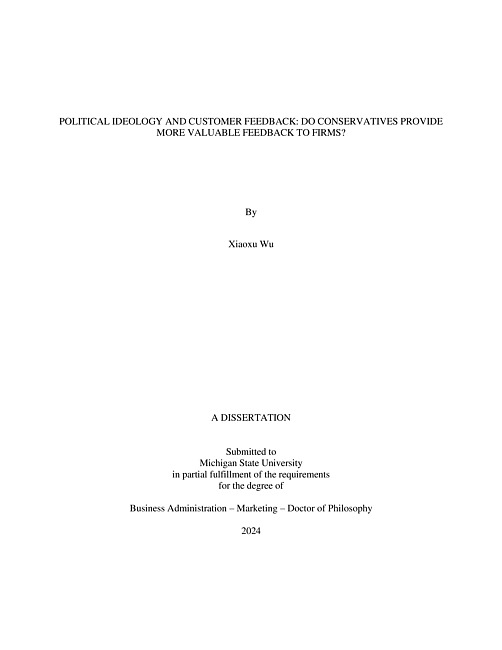POLITICAL IDEOLOGY AND CUSTOMER FEEDBACK : DO CONSERVATIVES PROVIDE MORE VALUABLE FEEDBACK TO FIRMS?