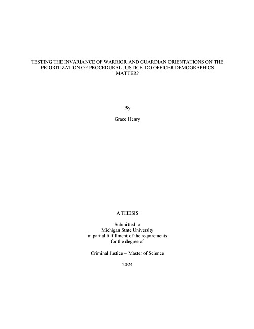 TESTING THE INVARIANCE OF WARRIOR AND GUARDIAN ORIENTATIONS ON THE PRIORITIZATION OF PROCEDURAL JUSTICE : DO OFFICER DEMOGRAPHICS MATTER?