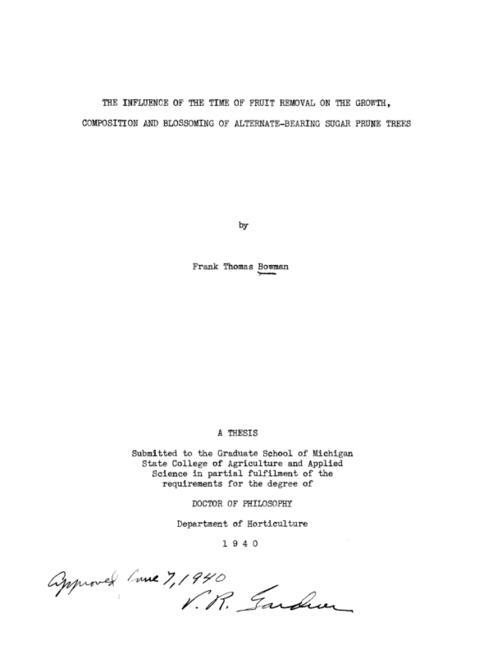 The influence of the time of fruit removal on the growth, composition and blossoming of alternate-bearing sugar prune trees