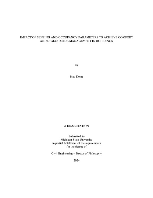 In the United States, the residential and commercial sectors have consumed increasingly more energy over the past 70 years. As the U.S. shifts towards a carbon-neutral electric grid, electrification using fossil fuel-free, renewable energy resources such as wind and solar will help to reduce greenhouse gas (GHG) emissions. To reduce the need for fossil fuels and utilize energy more efficiently, technologies and policies are introduced to help decrease the demand-side intensity of building sectors. Three issues are addressed in this research to support the goals of smart buildings or net energy-zero buildings (NEZB) to achieve human comfort and demand-side management (DSM): sensing technology sensitivity for smart building controls, occupants’ patterns and correlations in residential buildings, and appliance use in residential buildings.First, there has been a lack of studies and guidance on the appropriate placement of various sensors within a building and how this sensor placement impacts building control performance. This research thus first investigates (i) how sensitive controls of buildings are to sensor placement, in particular, sensor location and orientation. Sensor placement impact analysis helps to investigate the impact on energy use and demand for an integrated lighting and shading control system. Second, various studies have shown that occupancy-related factors in energy modeling can create significant differences in building energy consumption. Human-related factors, especially occupants’ activities and behavior, are less well understood, especially in the wake of lifestyle changes that have occurred as a result of the pandemic. This research thus (ii) assesses and quantifies the changes to occupancy patterns and the relationship to the socioeconomic factors that have occurred due to the COVID-19 pandemic. Finally, the third topic focuses on demand-side management (DSM), which enables the ability to control the quantity and timing of electricity consumption. Approximately one-third of this consumption is from large appliances, many of which are occupancy-driven loads. Historically, energy use information for estimating the energy use of individual appliances has originated from a combination of field-collected and simulated data. However, this data originates from sources assessing pre-pandemic energy consumption patterns, thus there is a need to (iii) assess how energy use patterns of appliances have changed during and post-pandemic. This research thus helps to estimate demand reduction opportunities from the use of appliances in DSM applications.