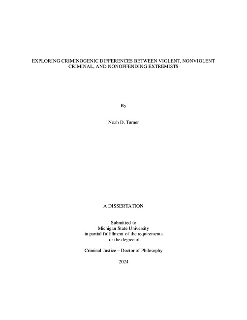Exploring Criminogenic Differences between Violent, Nonviolent Criminal, and Nonoffending Extremists