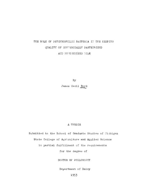 The role of psychrophilic bacteria in the keeping quality of commercially pasteurized and homogenized milk