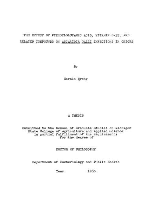 The effect of Pteroylglutamic acid, Vitamin B-12, and related compounds on Ascaridia Galli infections in chicks