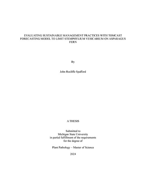 EVALUATING SUSTAINABLE MANAGEMENT PRACTICES WITH TOMCAST FORECASTING MODEL TO LIMIT STEMPHYLIUM VESICARIUM ON ASPARAGUS FERN