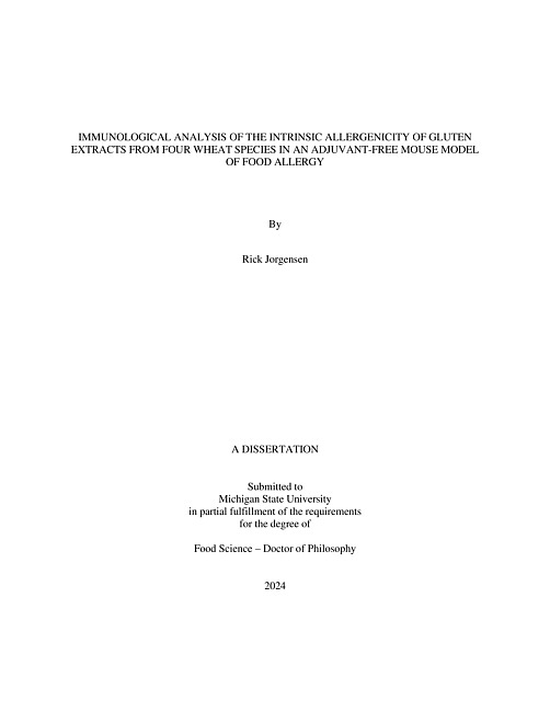 IMMUNOLOGICAL ANALYSIS OF THE INTRINSIC ALLERGENICITY OF GLUTEN EXTRACTS FROM FOUR WHEAT SPECIES IN AN ADJUVANT-FREE MOUSE MODEL OF FOOD ALLERGY