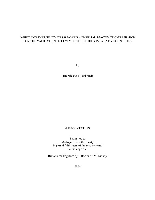 IMPROVING THE UTILITY OF SALMONELLA THERMAL INACTIVATION RESEARCH FOR THE VALIDATION OF LOW MOISTURE FOODS PREVENTIVE CONTROLS