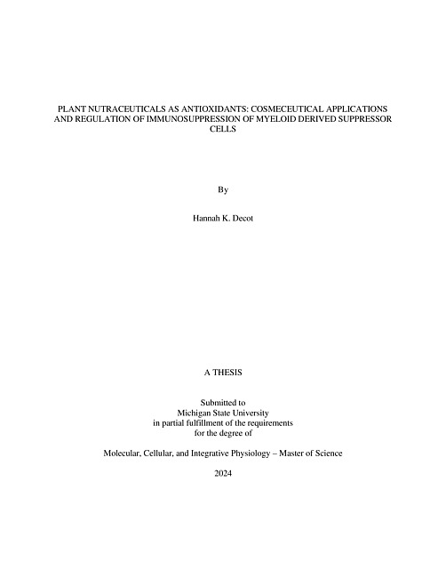 Plant Nutraceuticals as Antioxidants : Cosmeceutical Applications and Regulation of Immunosuppression of Myeloid Derived Suppressor Cells