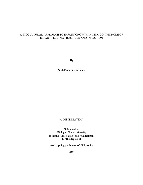 A BIOCULTURAL APPROACH TO INFANT GROWTH IN MEXICO : THE ROLE OF INFANT FEEDING PRACTICES AND INFECTION