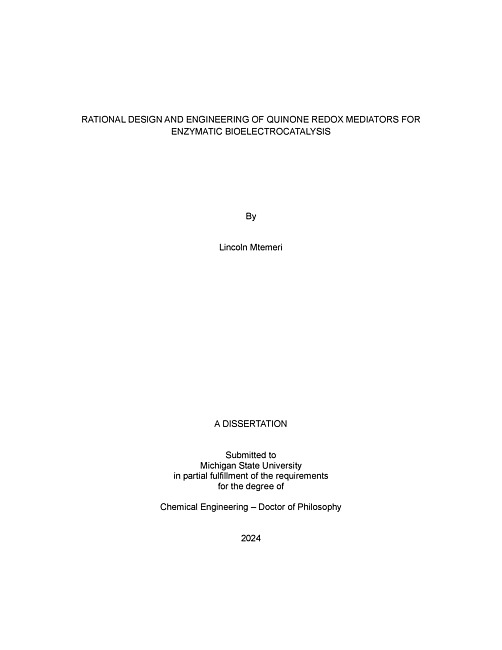 Cell-free bioelectrocatalysis has drawn significant research attention as the world transitions towards sustainable bioenergy sources. This technology utilizes electrodes to drive challenging enzymatic redox reactions, such as CO2 reduction and selective oxidation of lignin biomass. At these bioelectrochemical interfaces, enzymes are rarely capable of direct exchange of electrons with the electrode surface because many redox enzymes harbor cofactors that are buried within protein matrices that act as an electrical insulator. In such cases, electrochemically active small molecules, called redox mediators, have been proven effective in enabling efficient electron transfer by acting as electron shuttles between the electrode and enzyme cofactor. However, the task of selecting suitable redox mediators remains challenging due to lack of comprehensive design criteria. Presently, their design relies on a trial-and-error approach that emphasizes redox potential as the only parameter while overlooking the significance of other structural features. It is crucial to acknowledge that while the redox potential of the mediator serves as a thermodynamic descriptor, it falls short in fully describing the kinetic behavior of redox mediators. This thesis describes efforts in developing strategies for designing and understanding the behavior of redox species using quinone-mediated glucose oxidation by glucose oxidase as a model system.The work begins by showcasing the application of parameterized modeling – specifically, supervised machine learning – to identify which structural components of quinone redox mediators correlate to enhanced reactivity with a model enzyme, glucose oxidase (GOx). Through this analysis, redox potential and mediator area (or molecular size) were identified as crucial chemical parameters to optimize when designing mediators. The role of other steric parameters (i.e. redox mediator projected area) when accessing GOx via its active site tunnel was investigated further. Using two complementary computational techniques, steered molecular dynamics and umbrella sampling, a rate-limiting step was identified from a series of elementary steps. Specifically, it was determined that the transport of redox species in the protein tunnel constitutes the rate-limiting step in the overall process. Utilizing molecular docking and molecular dynamics simulations, a specific quinone-functionalized polymer was examined with the goal of determining why it exhibits activity with glucose dehydrogenase (FAD-GDH) but not with GOx, despite both structurally similar enzymes exhibiting activity to the corresponding freely diffusing mediator. Docking simulations coupled with MD refinement reveal that the active site of GOx is inaccessible to the polymer-bound redox mediator due to the added steric bulk; this contrasts with FAD-GDH which has a wider molecular tunnel to its active site. This work serves as an exemplary demonstration of employing parameterized modeling in the design and engineering of redox mediators. Although these strategies were developed using GOx as a model system, a similar approach holds promise for designing bioelectrocatalytic platforms involving redox mediators. Additionally, these computational simulations can effectively address fundamental questions where experimental continuum models are inadequate. This integrated effort brings us closer to design of next-generation effective bioelectrodes for mediated bioelectrocatalysis.