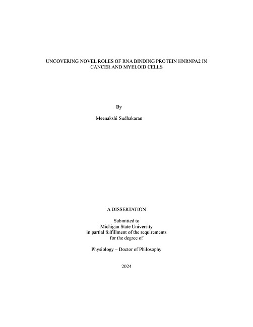 UNCOVERING NOVEL ROLES OF RNA BINDING PROTEIN HNRNPA2 IN CANCER AND MYELOID CELLS