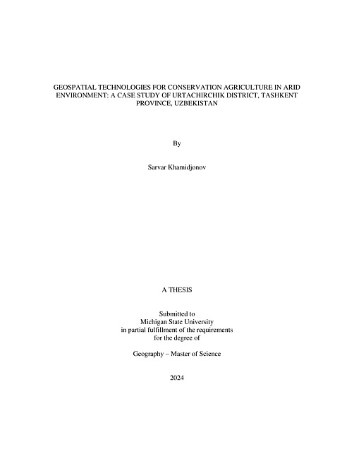 GEOSPATIAL TECHNOLOGIES FOR CONSERVATION AGRICULTURE IN ARID ENVIRONMENT : A CASE STUDY OF URTACHIRCHIK DISTRICT, TASHKENT PROVINCE, UZBEKISTAN
