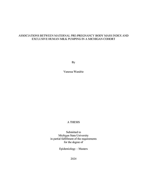 Associations between Maternal Pre-Pregnancy Body Mass Index and Exclusive Human Milk Pumping in a Michigan Cohort