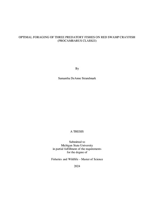 OPTIMAL FORAGING OF THREE PREDATORY FISHES ON RED SWAMP CRAYFISH (PROCAMBARUS CLARKII).