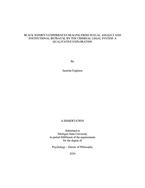 BLACK WOMEN'S EXPERIENCES HEALING FROM SEXUAL ASSAULT AND INSTITUTIONAL BETRAYAL BY THE CRIMINAL LEGAL SYSTEM : A QUALITATIVE EXPLORATION