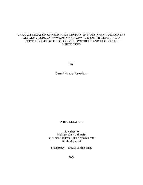 CHARACTERIZATION OF RESISTANCE MECHANISMS AND INHERITANCE OF THE FALL ARMYWORM Spodoptera frugiperda (J.E. SMITH) (LEPIDOPTERA : NOCTUIDAE) FROM PUERTO RICO TO SYNTHETIC AND BIOLOGICAL INSECTICIDES.