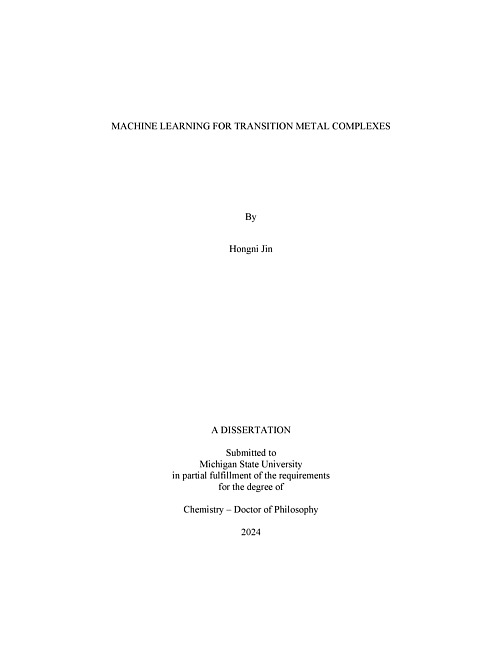 MACHINE LEARNING FOR TRANSITION METAL COMPLEXES