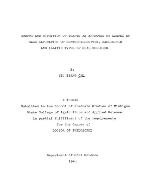 Growth and nutrition of plants as affected by degree of base saturation of montmorillonitic, kaolinitic and illicit types of soil colloids