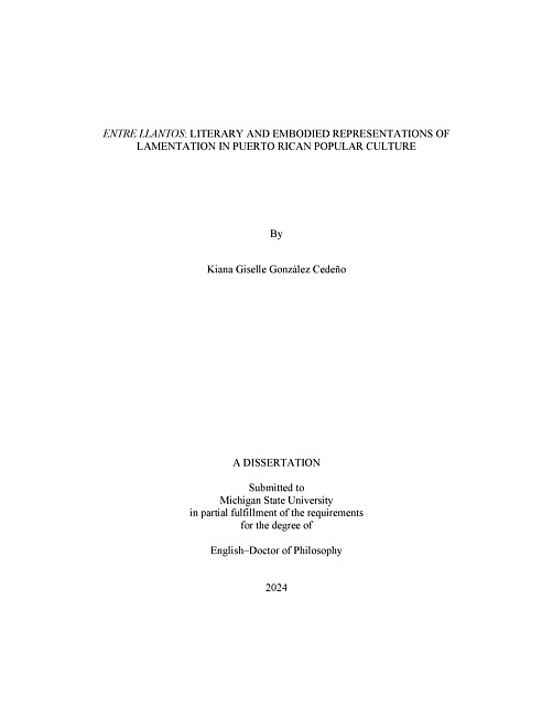 Entre Llantos : Literary and Embodied Representations of Lamentation in Puerto Rican Popular Culture