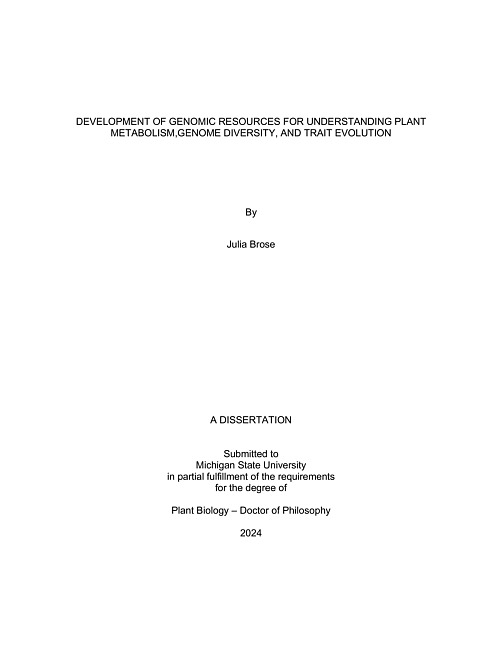 DEVELOPMENT OF GENOMIC RESOURCES FOR UNDERSTANDING PLANT METABOLISM,GENOME DIVERSITY, AND TRAIT EVOLUTION