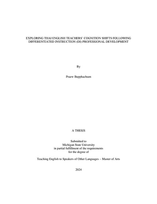 EXPLORING THAI ENGLISH TEACHERS’ COGNITION SHIFTS FOLLOWING DIFFERENTIATED INSTRUCTION (DI) PROFESSIONAL DEVELOPMENT